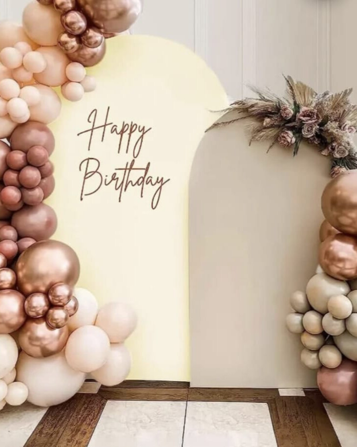 Backdrop mit einer Ballongirlande organisch (Ballonbogen mit verschiedenen Ballongrößen 12-30cm)